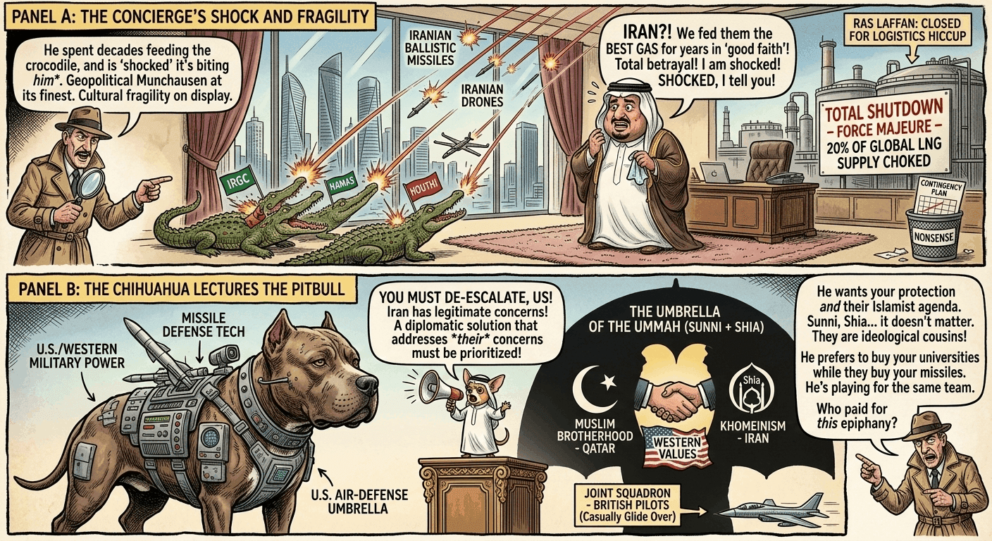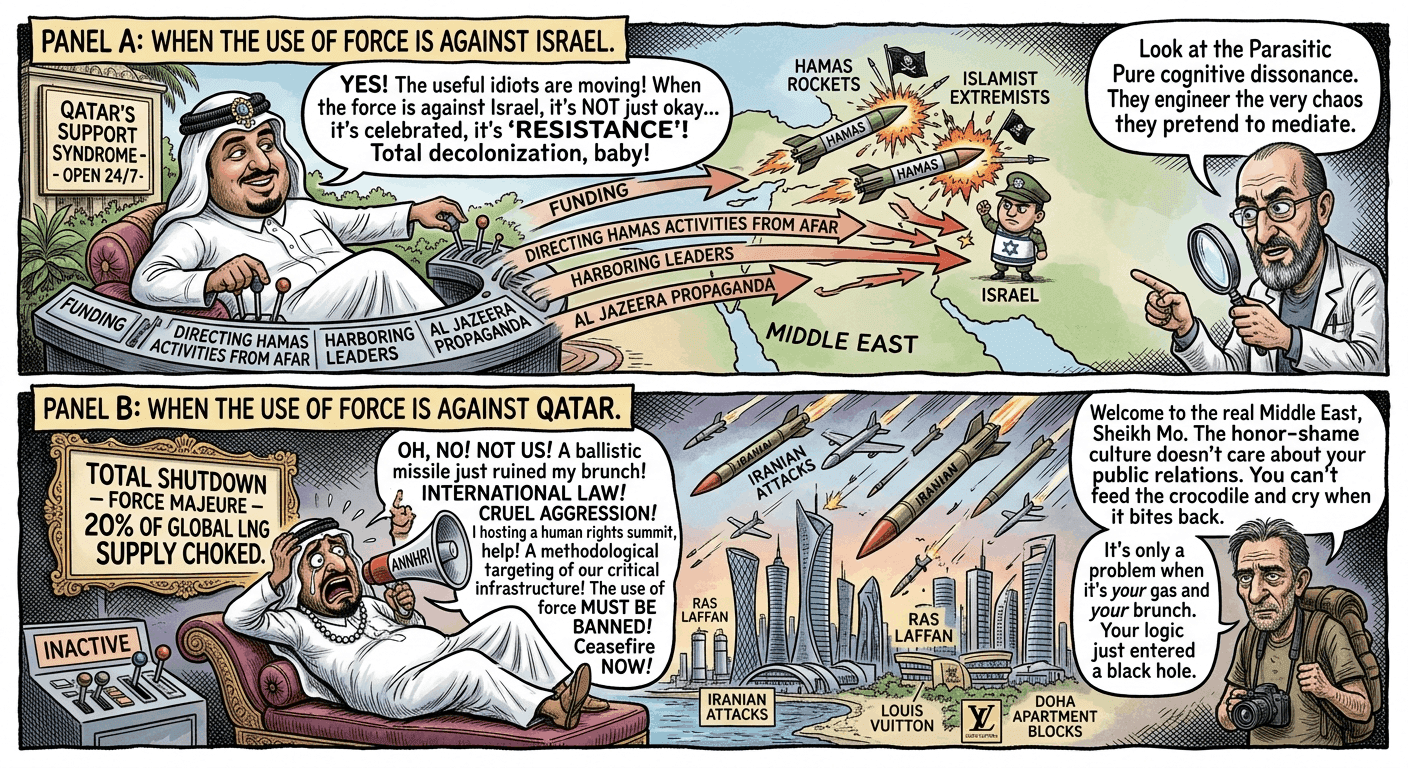When the Houthis choked European trade to defend Hamas, Qatar called it “context.” When attacks hit Gulf energy facilities and threaten Qatari revenue, Qatar calls it an international emergency requiring immediate Western intervention. It is the Geopolitical Munchausen Syndrome in its purest form: they create the disease, sponsor the pathogens, and then scream for the doctors the moment they catch a mild fever.