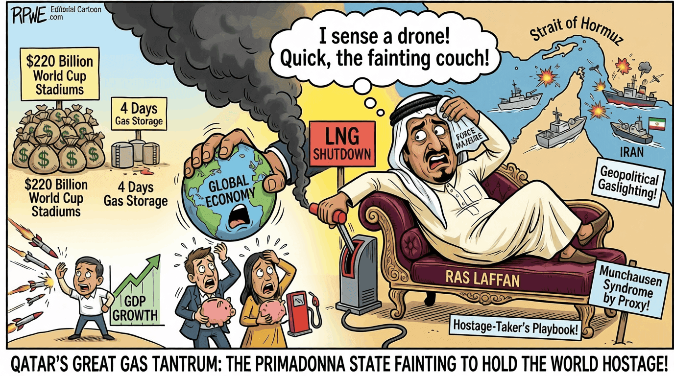 Following recent kinetic strikes against critical Gulf energy infrastructure, the Qatari Prime Minister rushed to the microphones with a newfound, breathless sense of apocalyptic urgency. The message was no longer about “context.” It was no longer about “nuance.” It was no longer about “the legitimate grievances of the resistance.”